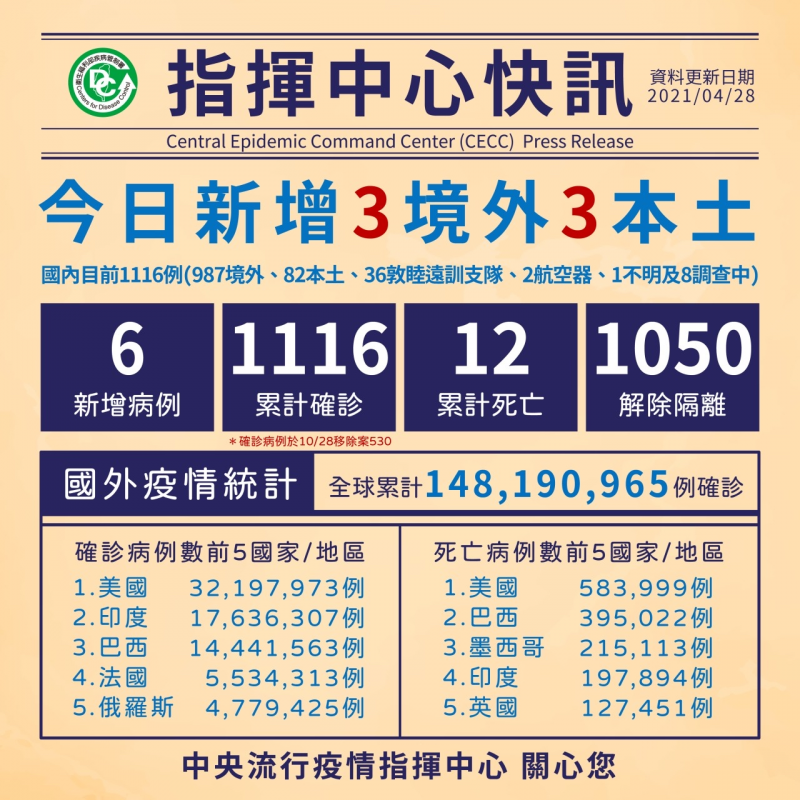 又見本土!中央流行疫情指揮中心今(28)日公布國內新增3例本土病例