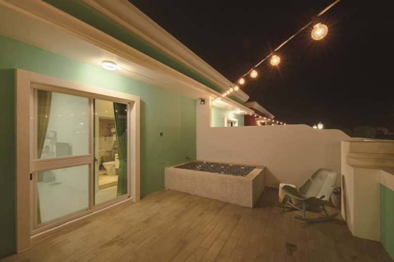 想要擁有更多的愜意感,推薦豪華露天雙人房,於角落設置一個休閒吊椅,窩進去坐上搖一搖,彷彿所有煩惱都可以瞬間消卻。室外則有個以磁磚拼貼砌成的露天大浴池,可以一邊舒服地泡澡,一邊瞭望藍天白雲,享受墾丁艷陽的熱情,夜晚時皎潔明月和閃耀星空相伴,充分感受大自然的尊寵,閒適自在。