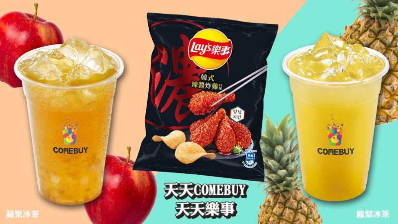 任兩杯,即可立即免費獲得聯名贊助的「樂事」韓式辣醬炸雞口味洋芋片乙包,總共24000包(市售每包20元,數量有限,送完為止)。 讓你今夏不鬱悶,有吃又有喝天天COMEBUY天天樂事不斷。