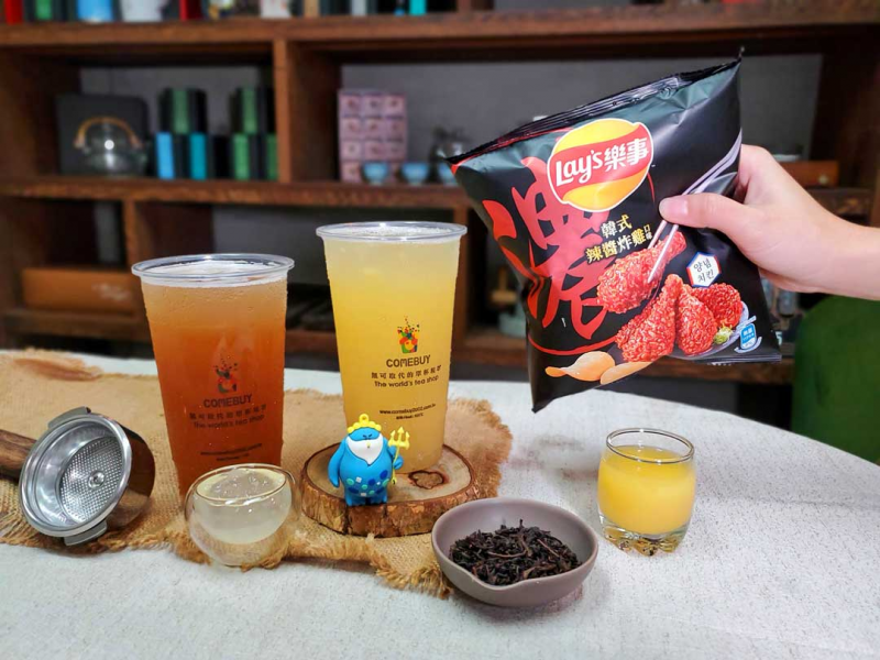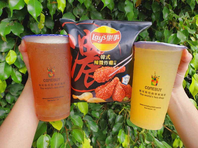 五月往往是梅雨季節的開始,但今年因為少雨更顯天氣的悶熱,是否常常會有無精打采的感覺呢?COMEBUY為幫所有粉絲振作精神,特別與風靡全球NO.1洋芋片品牌「樂事」合作,希望大家喝到在地鮮果調茶「蘋果冰茶」、「鳳梨冰茶」之外,更能搭配好吃美味洋芋片,滿足口腹之慾就能擁有好心情。首推,目前市場上人氣熱賣商品(樂事韓式辣醬炸雞口味洋芋片),使用當令新鮮馬鈴薯製成,一口咬下就能感受韓式甜辣醬開始在舌尖蔓延。緊接著,炸雞的濃厚香味撲鼻而來,尾韻留下甜辣醬與濃厚肉味鹹甜交錯的多層次口感,吃一口就能體驗道地韓式炸雞的涮嘴好滋味,再搭配COMEBUY飲品,絕對是今夏滿足味蕾的絕搭組合!