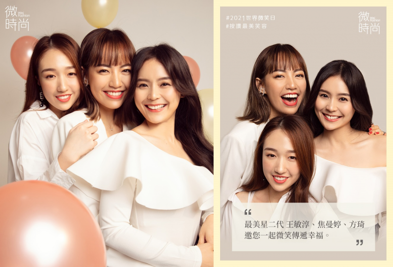 微時尚「2021世界微笑日-#按讚最美笑容」特別企劃,邀請了最美星二代王敏淳、焦曼婷、方琦擔任微笑大使。談及最近和父母一起做過最開心的事,王敏淳照護最近腳扭傷的媽媽,被李翊君力讚「養這個女兒是有用的!」焦曼婷則突破以往大膽挑戰壞女人角色,讓焦恩俊超自豪頻向好友推薦女兒新戲;而方琦則和媽媽梁佑南齊心投入公益,關懷老人與小孩,能與媽媽齊心做愛心讓她從中得到無與倫比的快樂。