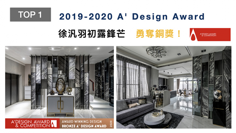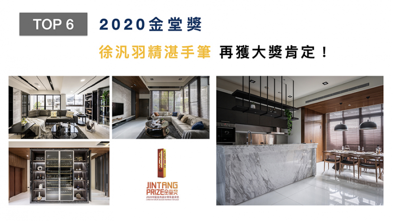 金堂獎2010年正式起航於北京,致力推動「設計創造價值」,而於2020年賽事僅有11%的獲獎率之下,徐總監合併華人風水習俗及歐式家具,並以「以和為貴」的處事哲學,打造敞亮大宅《隱.敘》,成功獲得「年度傑出住宅公寓空間設計」的獎項!