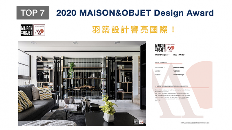 MAISON&OBJET PARIS巴黎時尚家居設計展設立的MAISON&OBJET Design Award,結合「展、學、研、產、銷」多方專業,旨在「發掘好設計,創造好生活」。羽築設計在作品《隱.敘》中,透過特殊尺寸的丈量等設計手法,獲得2020 MAISON&OBJET Design Award肯認!