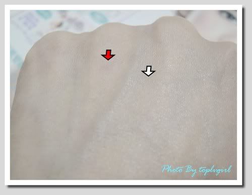 塗抹後 白色箭號下的微血管顏色比紅色箭號下的微血管顏色淡