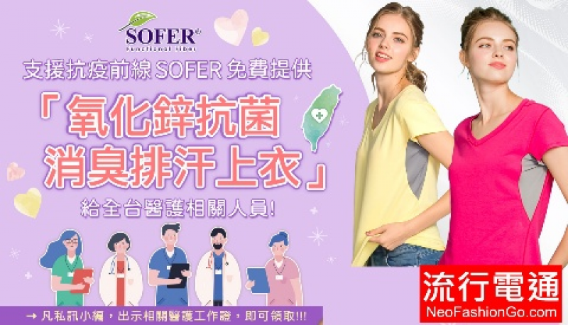 目前國內COVID-19疫情已警戒至第三級,所有人都必須加強個人保護,出門必配戴口罩,手部酒精消毒,還要常洗手。在這抗疫大作戰時,最辛苦的莫過於在醫療院所努力的醫師與護士,為病患日夜不停的檢驗與照料,並且在感染風險最高的地方,奉獻自己的心力,令人動容。在這炎炎夏日,既要密不通風的保護自己,又要保持清爽,是非常辛苦的事。SOFER 董事長錢亞玲聽聞醫護抗疫的辛勞,非常感動,力挺支持,特別將【SOFER 氧化鋅抗菌涼感衣】贈送給抗疫前線醫護人員,希望在這高溫的天氣又要密不通風保護情況下,讓涼感衣能發揮清爽舒適的效果,來慰勞他們為民眾服務的辛勞。她表示:「現在疫情越來越緊張,我們大家一定要同心協力抗疫,聽從政府規定。保護好個人,就如同保護好彼此。【SOFER 氧化鋅抗菌涼感衣】是我很引以為傲的産品,從材料的硏究開發到完成,都是真材實料,有各類證明,完全是我理想中的優質商品。這次看到醫療人員,在自己的崗位上堅持工作,與COVID-19病毒奮戰,非常感動,現在可以貢獻自家優質涼感衣,深深表示對醫護感謝的心意。」目前已完成捐贈的有:亞東醫院2000件、仁愛醫院1000件....,其他醫院還在捐贈規劃中。 現在只要是醫療相關人員與SOFER 官方FB粉絲頁小編聯繫,出示相關證件,即可獲得【SOFER 氧化鋅抗菌涼感衣】乙件。【SOFER 氧化鋅抗菌涼感衣】MIT台灣製造,榮獲台灣優質產品金牌獎,原料結合三大機能性纖維:德國氧化鋅抗菌纖維、日本涼感纖維及奧地利天絲纖維。不但抗UV,還有99.9%的抗菌保護,有效除臭,不讓汗水味久留;並且持續涼感,在大太陽底下能透氣舒適;還有柔滑觸感,親膚更具吸濕散熱的效果。( NFG - 流行電通 - NeoFashionGo - www.neofashiongo.com )