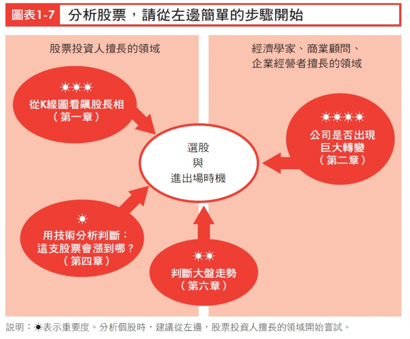 本書的精華就濃縮在圖表1-7(P.31)中。當你在做投資決策時,請務必檢查以下四個項目,我以☀的數量來標示每一項的重要度。
