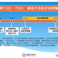 嘉義市疫情指揮中心於下午疫情直播記者會中指出,案7322、7323為50多歲及60多歲姊妹,5月13日曾與彰化縣確診案1473接觸,在5月14日晚間得知友人被確診,於5月15日一早與嘉義市衛生局聯繫,衛生局隨即將兩位列為居家隔離(至5月28日),截至目前為止兩位均無症狀,為求慎重起見,市衛生局於5月27日安排於解除隔離前採檢,採檢確診,而15至27日為居家隔離期間,因此無匡列接觸者。