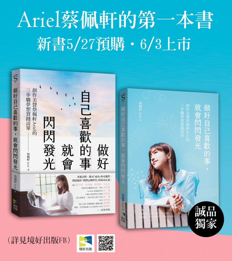 原文出處轉自境好出版【做好自己喜歡的事,就會閃閃發光【博客來獨家限量親簽版】(加贈限量夢想記事本):創作美聲蔡佩軒Ariel的3步驟夢想實踐清單】