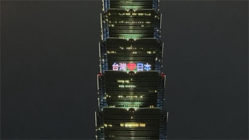 天色漸暗,台北101大樓的玻璃帷幕,亮起了「台日友誼長存」、「台灣愛日本」、「合作對抗疫情」等字樣,點燈感謝日本,在台灣疫情嚴峻,缺少疫苗時,伸出援手。圓山飯店過去也曾點燈「平安」,為台灣祈福,這次則是打出日文的感謝,並在臉書發文,感恩日本送暖,台灣人民會永遠記得這一天。