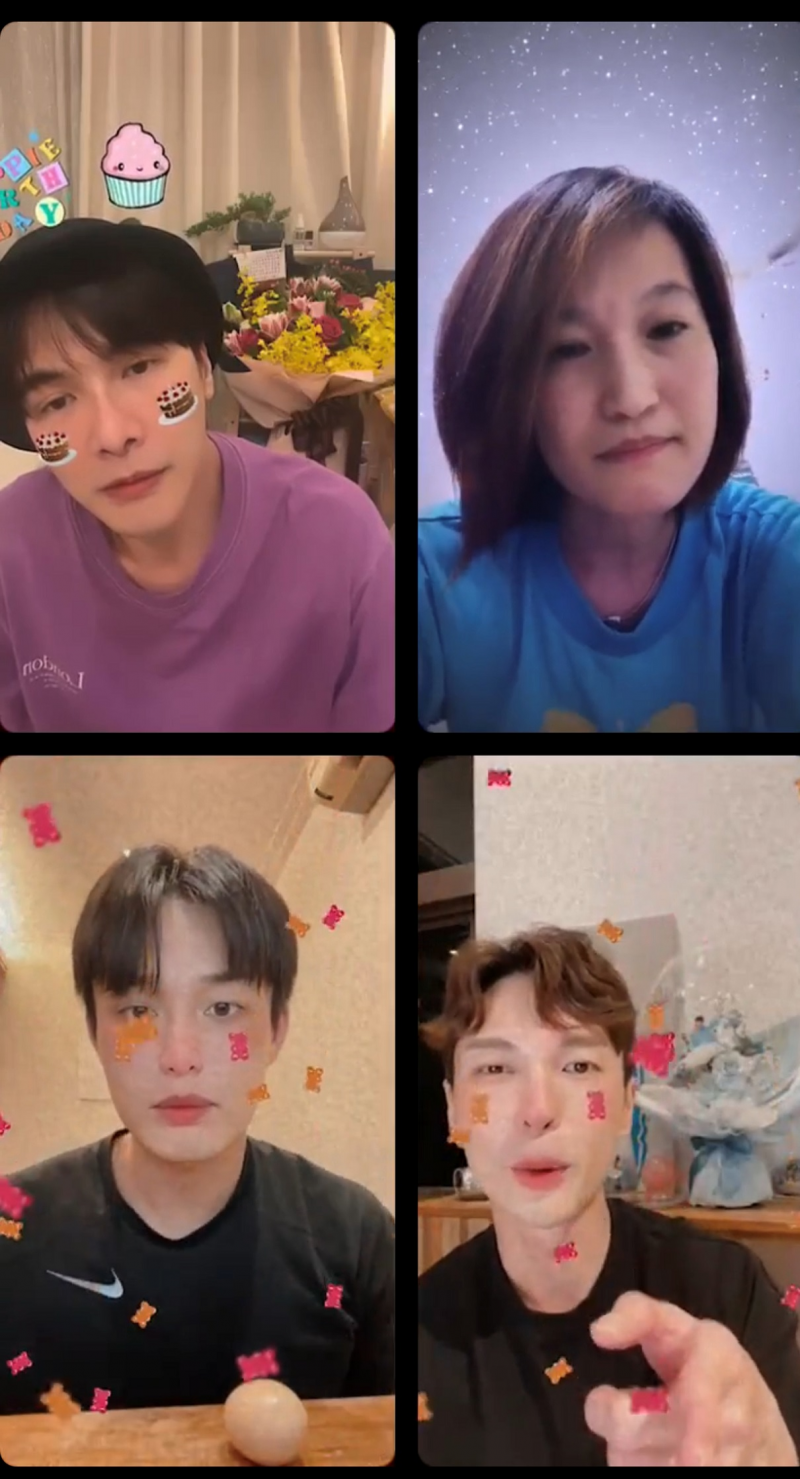 好友「王心凌」也特別上線祝福謝佳見生日快樂,更邀約一起拋下偶包使用有趣的大嘴濾鏡,後續因BL劇酷蓋爸爸合作而結緣的「林輝瑝」也加入聊天的行列,在最後直播尾聲「陳勢安」再度加入,一同跨過6月14日這天,四人都說這是疫情下最的浪漫的線上群聚。