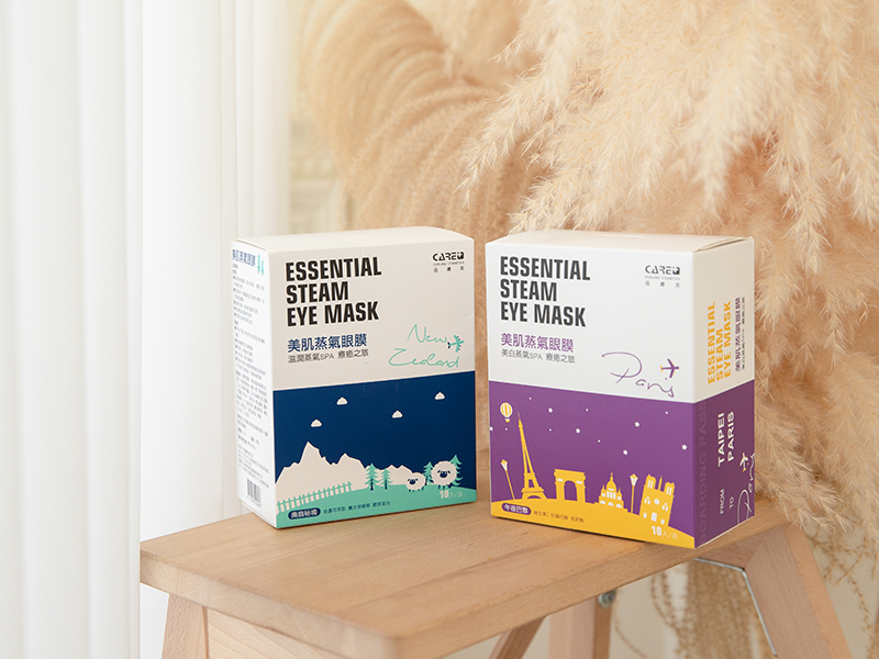 陳昭慶表示,蓓膚美美肌蒸氣眼膜有午夜巴黎以及南島秘境兩款,午夜巴黎的主要成分為維生素C、杜鵑花酸、玻尿酸,有助改善眼周暗沉;南島秘境的有金盞花萃取、薰衣草精華、膠原蛋白,能夠有效滋潤眼周。蓓膚美美肌蒸氣眼膜最佳使用時間約20分鐘,不論出門旅遊、在家放鬆,都非常適合,體驗敷完眼膜後睜開雙眼神清氣爽的感覺。陳昭慶建議,蓓膚美美肌蒸氣眼膜能解決眼周肌膚的問題,但還是要記得,有空的話,多出門親近大自然,遠離3C,才更能改善身心靈健康。