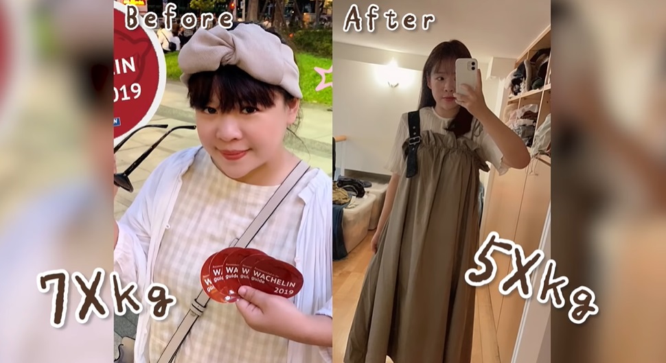 她在健康飲食並搭配運動下,成功的瘦下20公斤,她也放上過去與現在的對比圖,讓她發現她真的改變相當巨大。她也在影片中表示,不吃加工食品、含糖食品,包含甜點、零食、飲料、人工醬料、水果等。這段時間她吃最多的是深綠色蔬菜,其次是蛋白質,最後才是澱粉,她表示:「減肥最重要的就是一定要高纖維跟高蛋白質,才能讓你的腸道比較健康,讓它恢復正常的代謝。」。但她也不斷透露,每個人的體質不同,要吃多少或禁忌還是要洽詢專業營養師或是健身教練才可以。