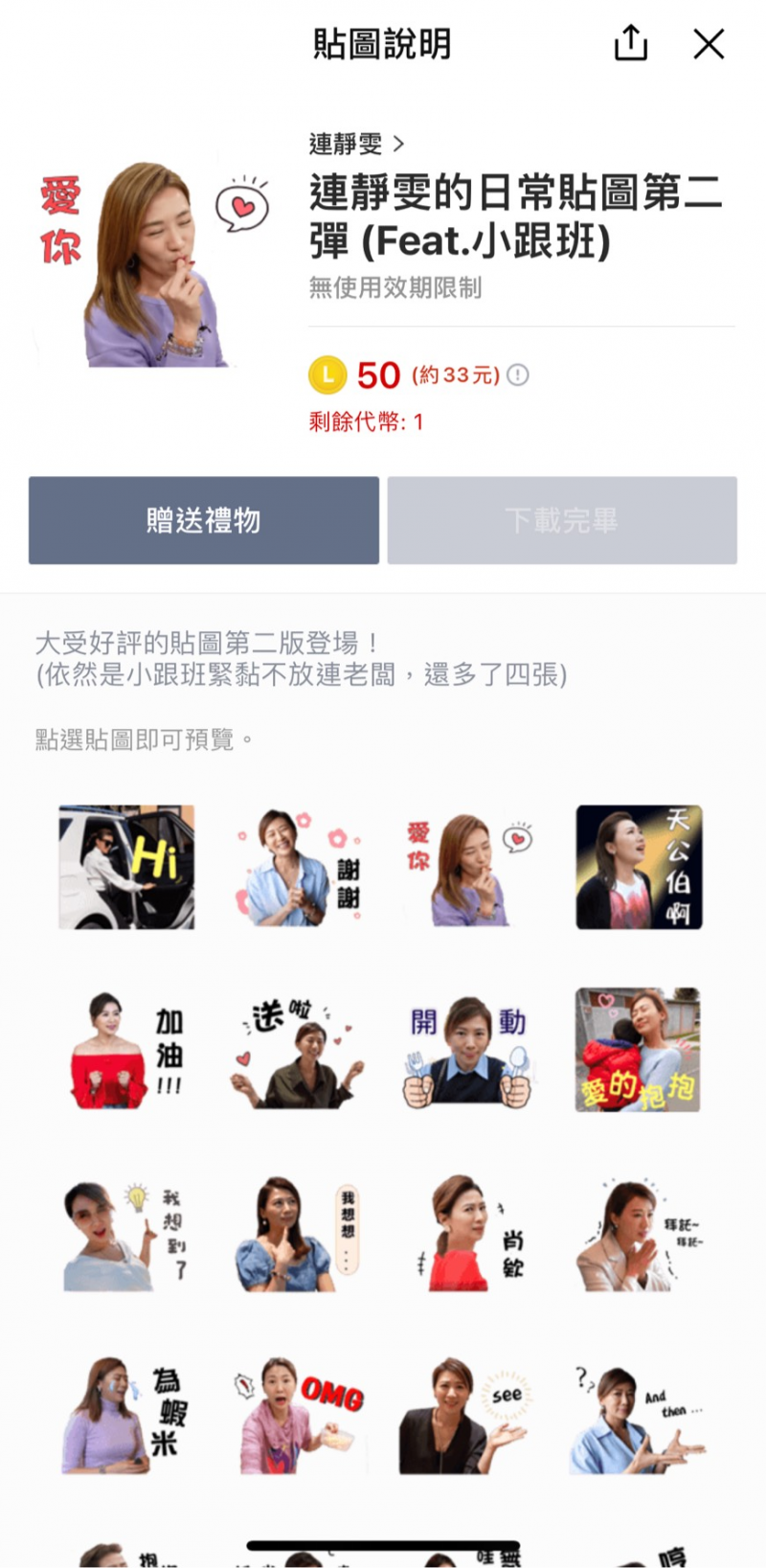 原以為會受到連靜雯的反對,想不到不設限的她一口答應。第一版貼圖出爐之後也大受好評,更有許多親朋好友瘋狂敲碗,上線的第一天就收到許多人許願想要的貼圖,也讓連靜雯大笑「大家用的比我還勤」,也讓團隊積極籌備第二款貼圖。