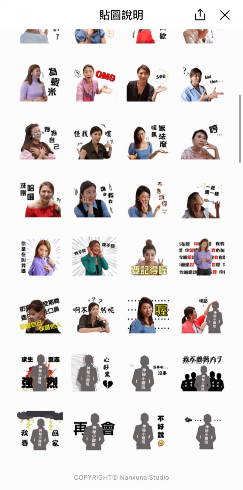 而連靜雯本人指定要的則是自己最常用的「天公伯啊」跟「送啦」;不設限的她,也讓年輕的團隊夥伴做自己喜歡的貼圖,如「我不想努力了」、「摸頭」、「我不聽我不聽」、「怪我嘍」等,有趣又實用。