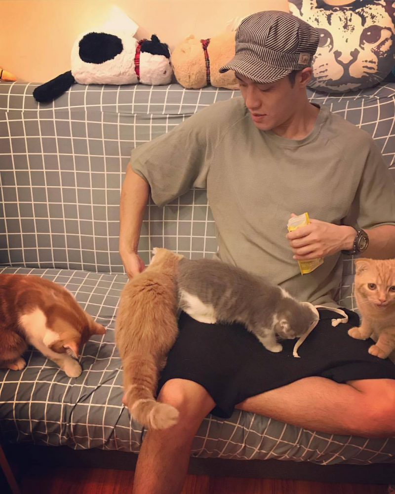 張睿家回憶起,第一隻貓叫「麻糬」,是一隻橘白色的貓。當牠越來越大隻的時候發現,其實貓還蠻黏人的。當自己要去工作的時候,張睿家透露,「麻糬」都會擋在門口,不讓他出去,就在那一直叫。這時候自己就會不理會,直接開門出去,但其實牠還是一直叫(記者:像不像把小孩送到幼稚園門口的每日日常,笑)。張睿家說,後來有一個想法「會不會牠一個人在家很孤獨?」因此才想到幫牠來找伴,而後養了第二隻貓、第三隻貓、第四隻貓,每一隻貓的個性,真的不一樣。