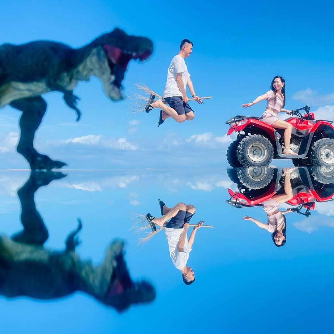 旅人們可以爬上去拍攝夢幻美照,天空之鏡般的美景輕鬆入手!(限重120公斤,請注意安全喔!)