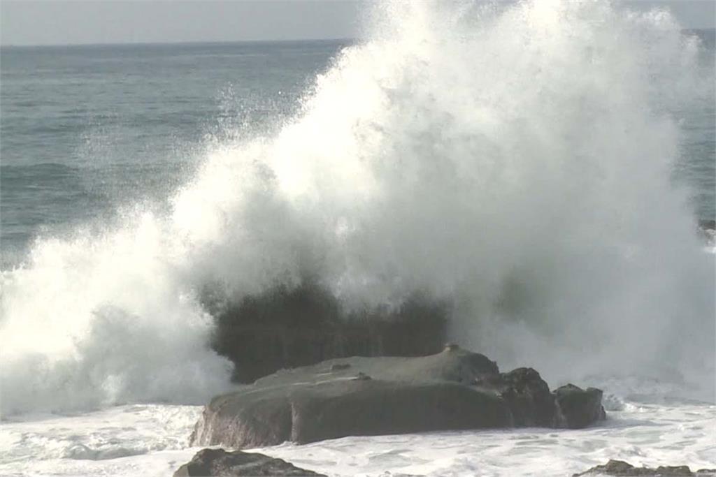 風雨增強,東海岸沿岸浪一波波跟著打上來。(圖/民視新聞)