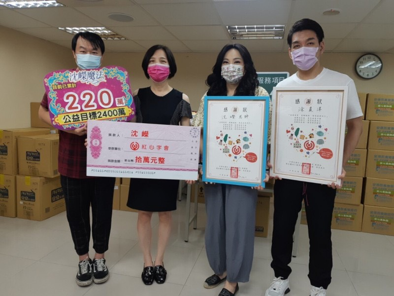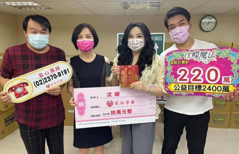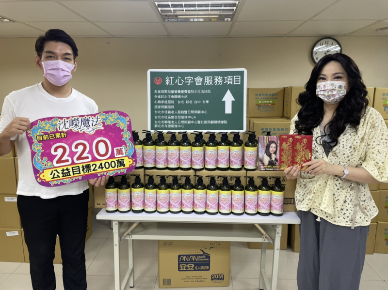 七月沈嶸老師率領歌手兼演員的徒兒涂晨洋至「紅心字會」除捐款十萬元外,更捐贈80瓶「喜樂加倍進財多」魔法洗衣精,響應支持紅心字會援助弱勢家庭、兒少及獨居長者的各項工作,也希望透過生活化的魔法產品,讓喜樂與進財的正能量能夠融入到弱勢族群生活中,而且家人一起使用還能一同受惠,讓喜悅豐盛的能量也觸及到台灣的弱勢角落。