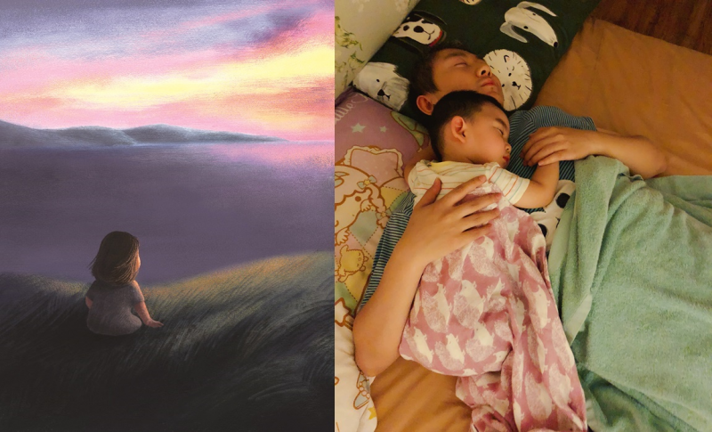 給花生講完睡前故事,將他哄睡後,疲憊不堪的我忍不住靠在床頭睡著了。