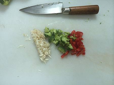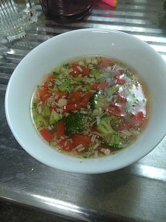 食材:顏色繽紛的配料 (如:花椰菜、金針菇、紅椒~或紅蘿蔔,玉米....等)