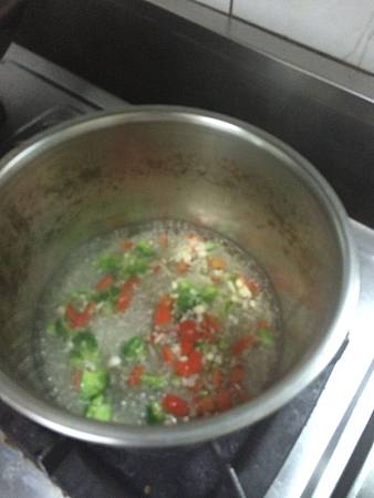 6. 食材丟入鍋中煮~(加入一些塩和油)