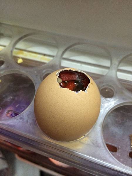 1. 先將蛋用刀子敲一小洞,將蛋液倒出,保留蛋殼 (蛋液可留做他用)