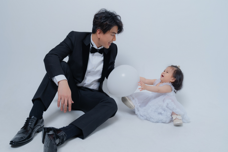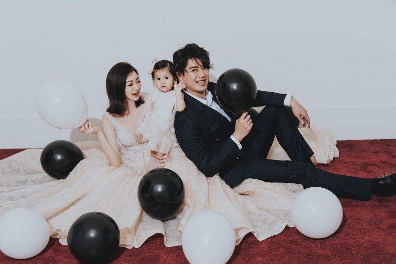 一家三口共花12小時拍了2套服裝,攝影師和工作人員拚命拿餅乾、玩偶吸引米估注意力,形成鏡頭外比鏡頭內熱鬧的有趣景象。另外,為了鏡頭好看,攝影師頻下反人體工學指令,像是要Vivian單肩把米估扛在脖子上、讓潘逸安緊收腹部核心半仰躺,Vivian享受過程,希望全家每年都能拍一次,潘逸安卻直喊累,「只要一進到攝影棚,就覺得在工作」,Vivian吐槽老公只出一張嘴,連西裝都要她上網張羅。