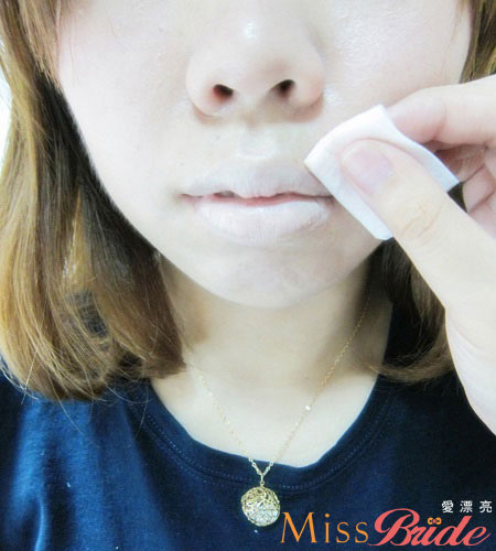 最後,輕輕用化妝棉擦去嘴巴邊緣跑出來的遮瑕膏,