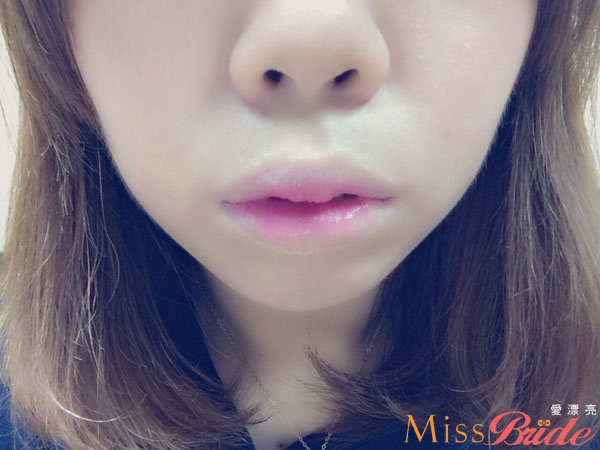 現在,妳可以發現妳的嘴唇顏色已經幾乎與皮膚融為一體,
