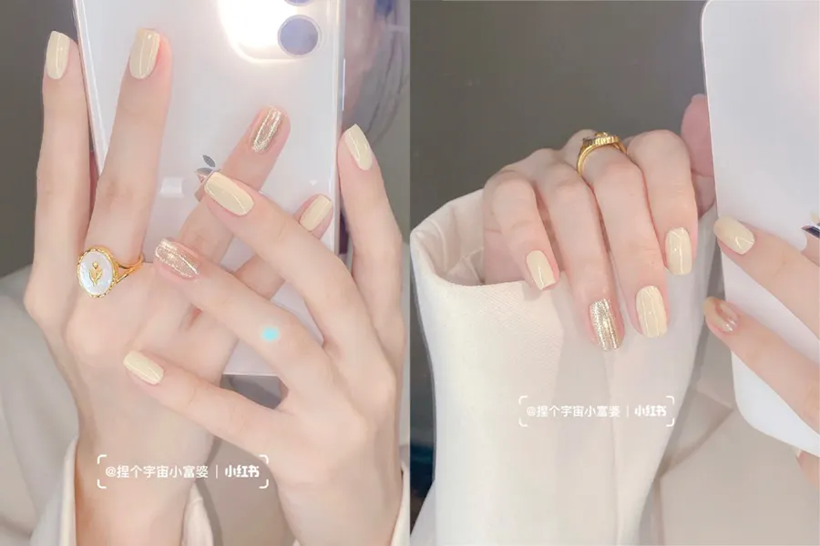 覺得金色太俗氣?那是因為沒有幫金色找到對的搭檔!金色貓眼X奶油白輕鬆搭配出韓系美甲,擺脫金光的俗氣感。