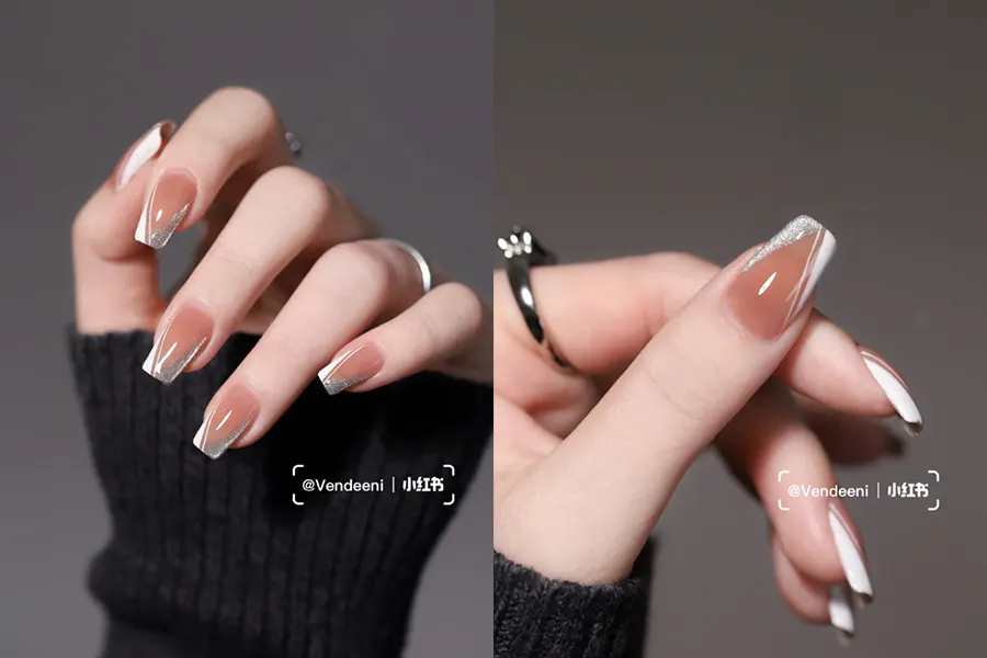 撒上閃亮亮貓眼就是這麼簡單~以銀白色製作出漸層感,用不著疊擦拼接多色,指尖簡單知性就相當好看。