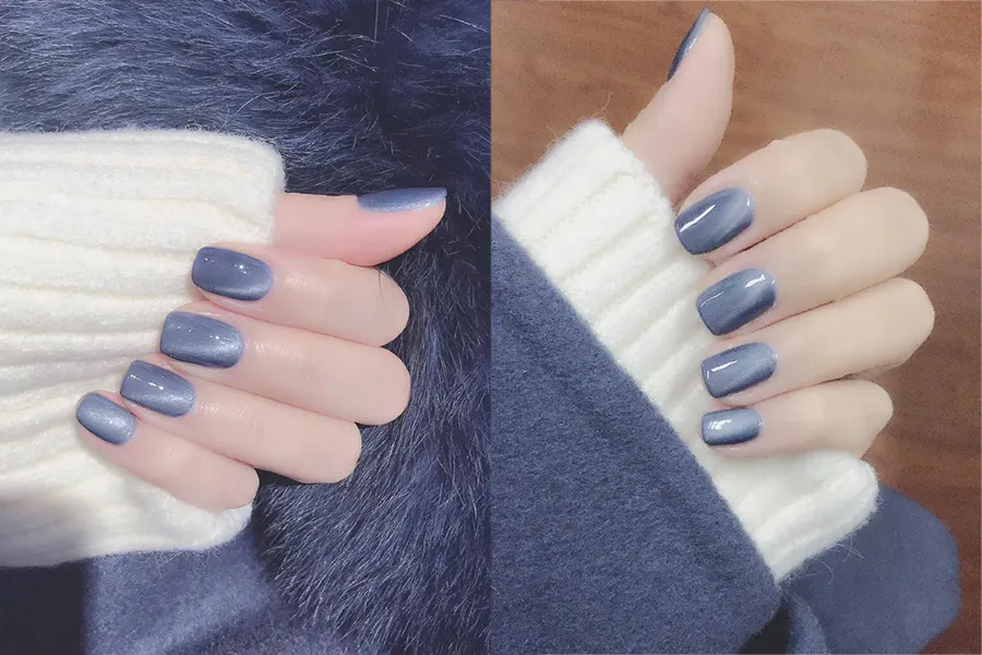 除了黑色可展現個性,來點藍灰亦很有沉靜的氣息,配上少許暈染漸層,搭配針織單品更是相襯。