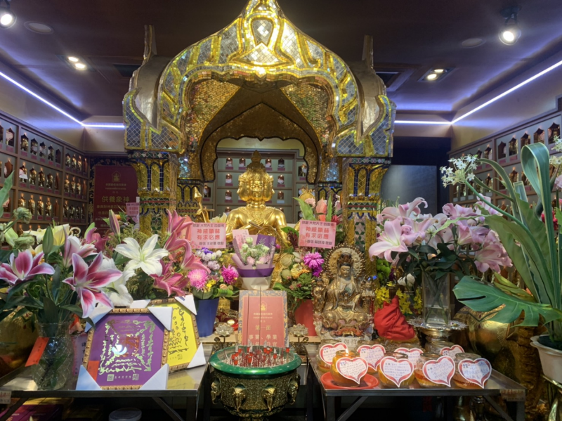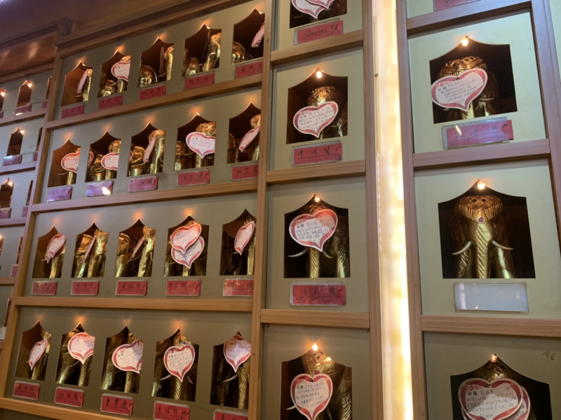▲「泰國愛侶灣四面佛台北」壯觀的還願供象牆