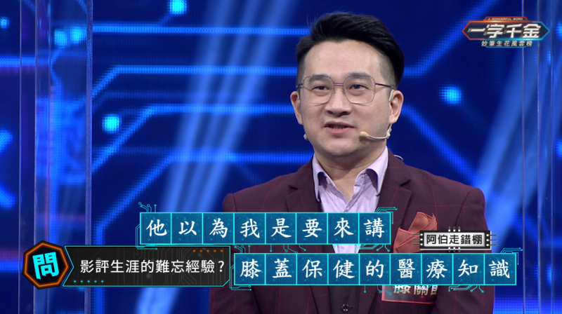 問起當影評遇到難忘的事,膝關節分享,某次受邀到圖書館演講,一位阿伯走進來沒久,調頭就走,讓他覺得滿糗的。後來工作人員細問才知道,阿伯以為是「膝關節」的醫療保健講座,一聽竟是講電影,完全走錯棚!膝關節事後回想,反稱讚:「阿伯滿果斷的,立即設下停損點,走人離開,不浪費時間!」也就釋懷了!