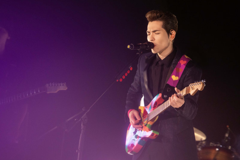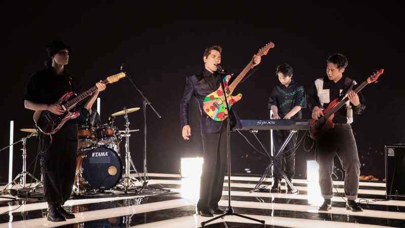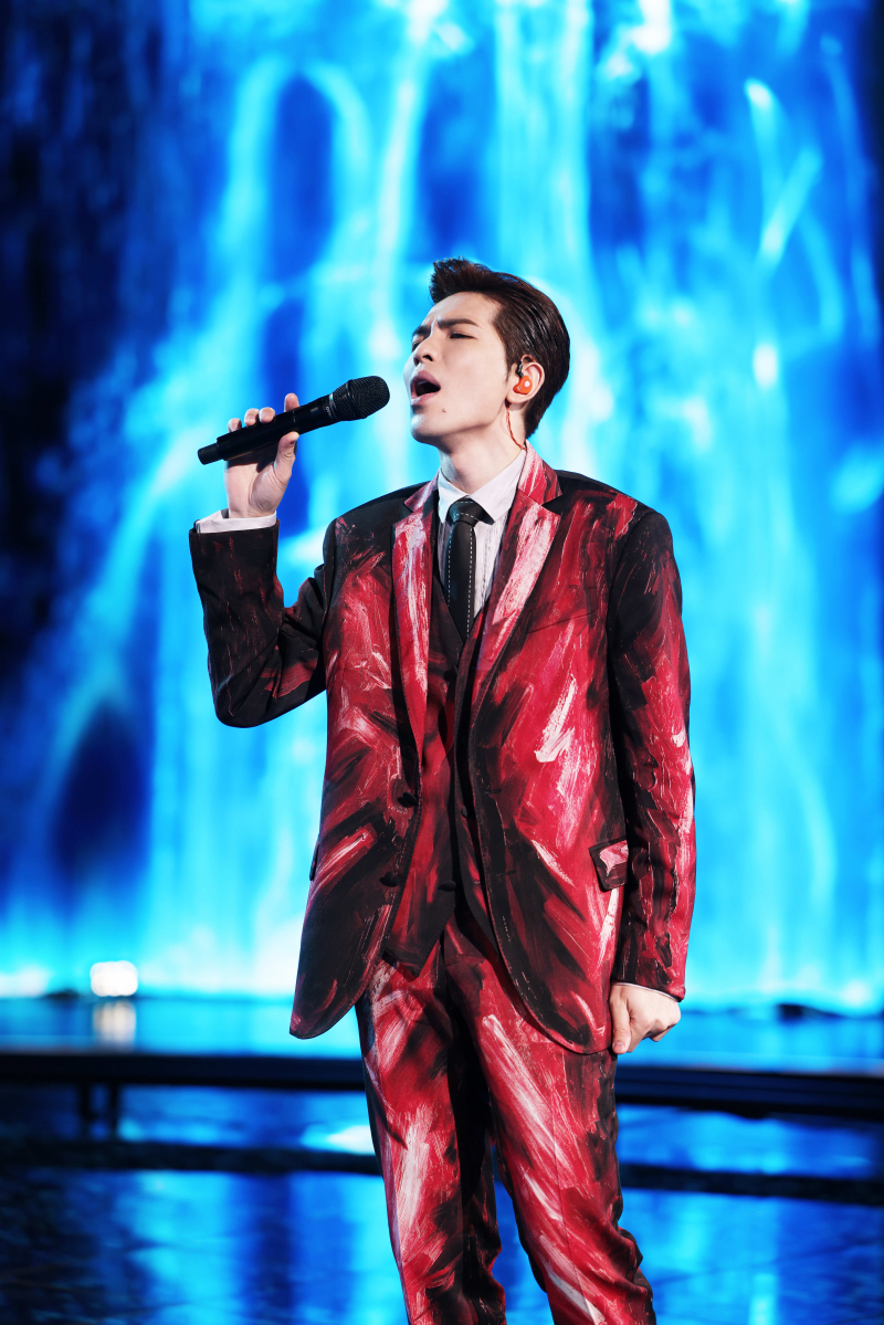蕭敬騰今年是第四度受邀央視中秋晚會的演出,身穿Moschino 2021秋冬系列,全身佈滿紅黑水彩筆墨印花,震撼登場,在滂薄的舞台場景中優雅的宛如一件畫作,抽象與寫實之間呼應了中秋佳節的浪漫氛圍。