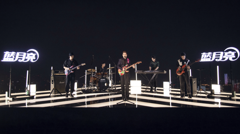 湖南衛視的秋晚,老蕭身穿Dsquared2經典劍領西服,暗夜藍點綴細緻的銀白光點,正如夜空中的繁星,簇擁著月圓時刻,與歌名《披星戴月的想你》不謀而合。