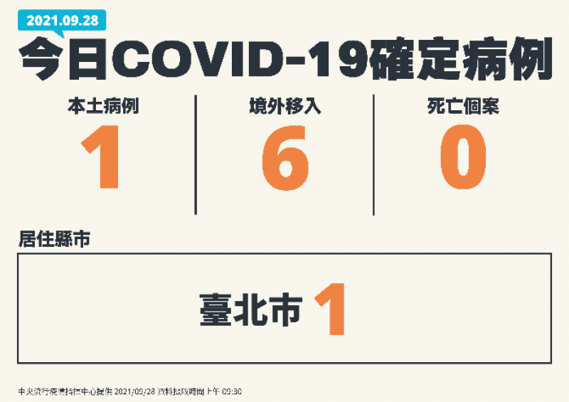 中央流行疫情指揮中心今(28)日公布國內新增7例COVID-19確定病例,分別為1例本土及6例境外移入;另確診個案中無新增死亡。