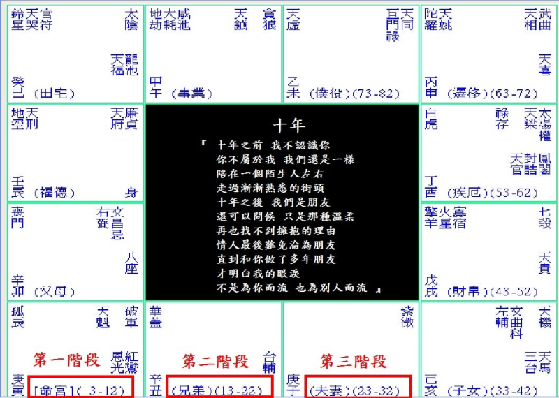由於每一個人的起運歲數不同,每個十年大限年紀有點不一樣,看看自己現在正處於哪個階段的十年,好好的規畫自己~~