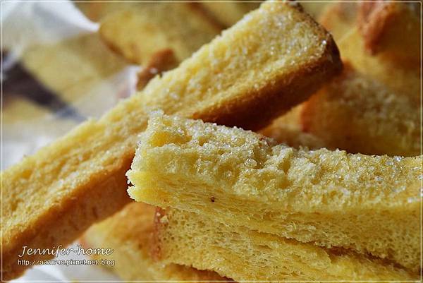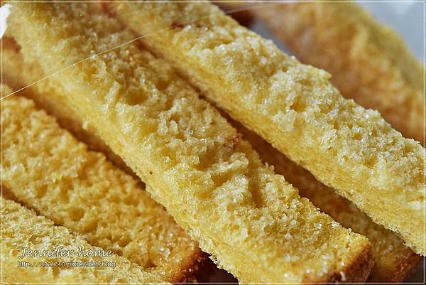 烤得相當酥脆的酥條有淡淡的奶香味上面鋪著一層珍珠般的糖粒