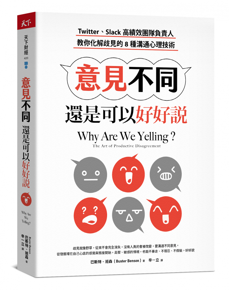 本文摘自天下雜誌出版《意見不同,還是可以好好說:Twitter 、Slack高績效團隊負責人,教你化解歧見的8種溝通心理技術》