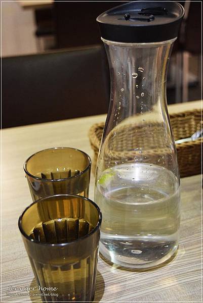 入座後服務人員很快的送來香香檸檬水和餐具盒以及可愛菜單