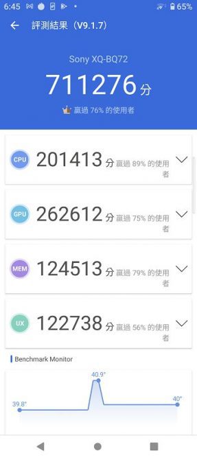 硬體規格部分,Xperia 5 III 採用高通 S888 處理器,8GB 記憶體、256G 儲存空間。Xperia 1 III 同樣採用高通 S888 處理器,但提供 12GB 記憶體,以及 256GB/512GB 兩種儲存空間版本,為了瞭解效能上有無差別,接下來替 Xperia 5 III 進行簡單跑分測試,先測試 Antutu 安兔兔 9: