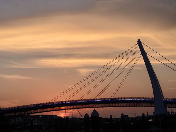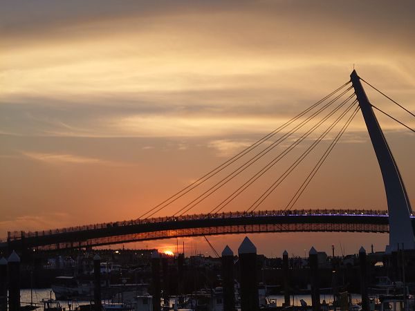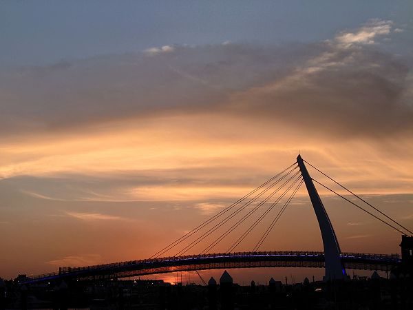 我們從天空、陽光餘暉,遠方橋樑、陰影、船隻與水面來觀察,可以看到兩者的呈現幾乎殊無二致。