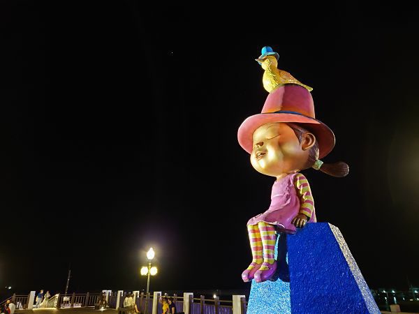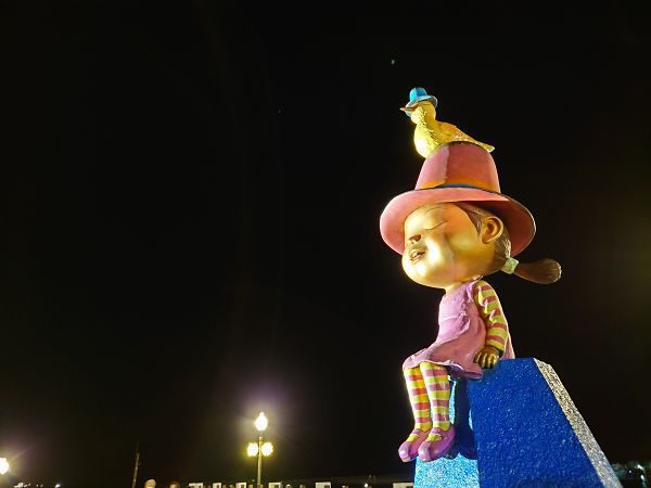 這次借用幾米的人型塑像代替人像拍攝,處在夜間、低光源的環境下, Xperia 5 III 與 Xperia 1 III 拍攝的路燈光輝,塑像的反光、陰影、色澤都沒有太大差異。