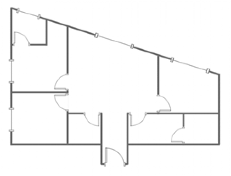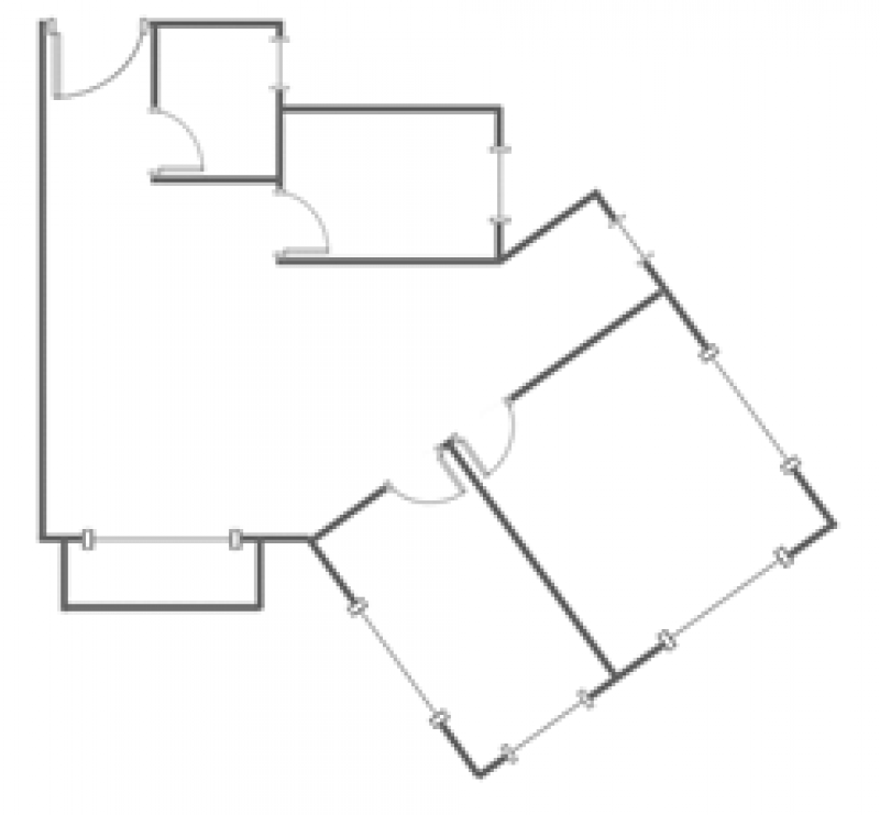 此種格局在新建案較不常見,通常是因基地本身偏向三角形、梯形或不規則形,才如此規劃。一般來說,畸零處(尖角處)通常會用做陽台或衛浴空間,較少做其他用途,因此,客廳、臥室、廚房等空間大多仍能維持方正規劃,不過還是有少數例外。