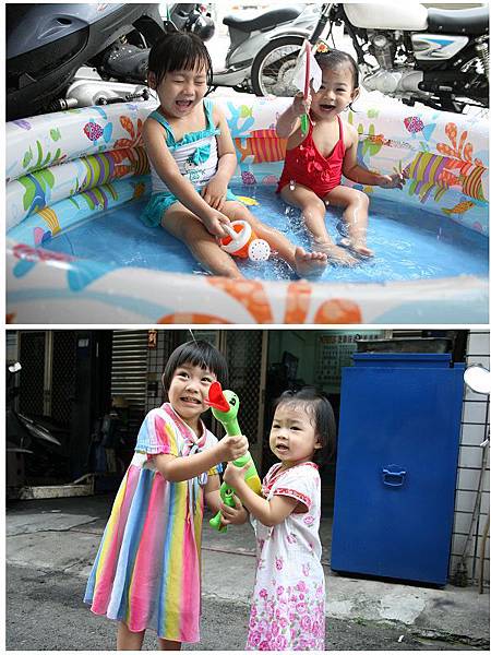 水槍只有一支時,也都不會吵架~岑岑還會教歆歆怎麼玩