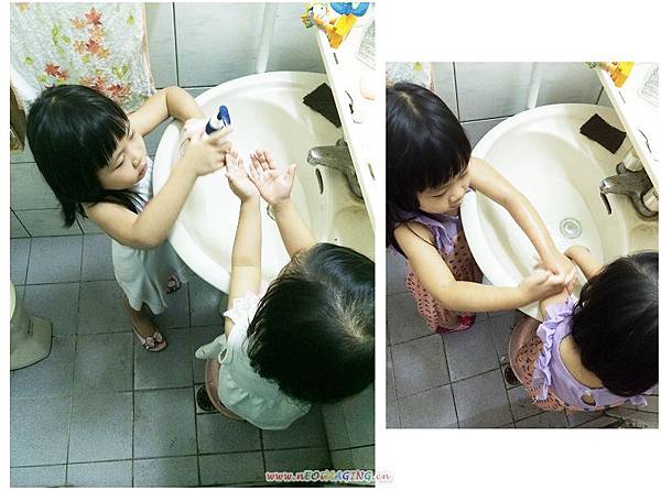 叫岑岑去洗手時,也會順便請她幫忙幫妹妹洗
