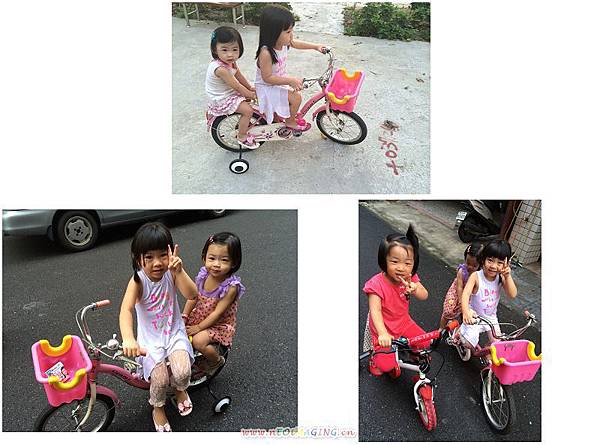 騎腳踏車時,兩隻也很愛一起騎一台,享受載人和被載的樂趣