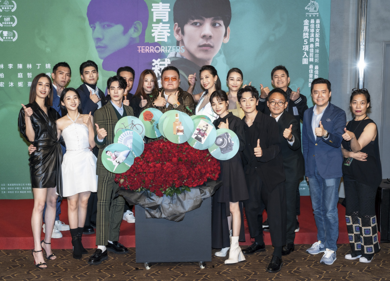 《青春弒戀》首映典禮上獻出電影中象徵浪漫愛情的「999朵紅玫瑰」花束,讓演員拿上各自在電影中的代表信物插入紅玫瑰花束中,望電影票房像紅玫瑰一般鮮紅亮眼、一路長紅。與導演何蔚庭交情深厚的丁寧表示:「非常何蔚庭式的浪漫!」何蔚庭也笑說:「我們電影是一部愛情電影,不論是李沐跟哲熹的純情愛戀關係或是柏宏比較黑暗的愛情觀,都是一種愛情的展現。」此次在《青春弒戀》有參與特別演出的信,也在陳庭妮的代表象徵物上驚喜出現,讓陳庭妮哭笑不得表示:「真的沒想到信會用這種方式出現!」