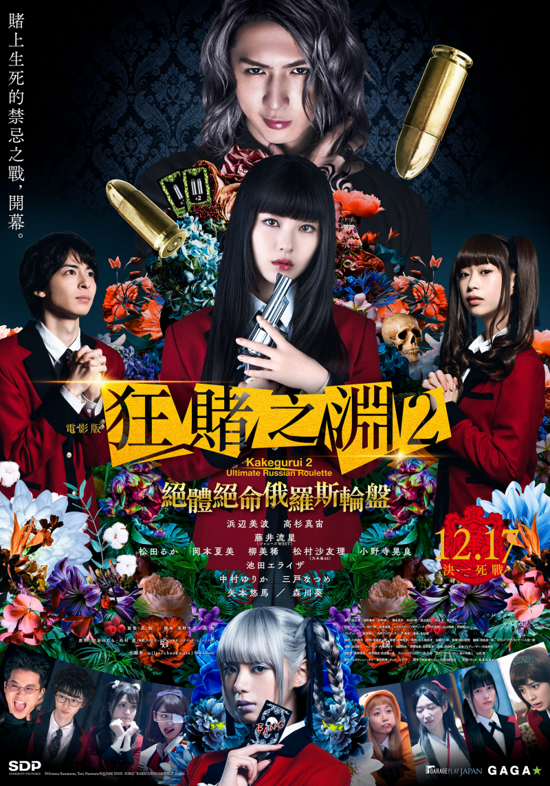 日本超人氣漫畫《狂賭之淵》,故事以青春校園結合賭博為題材,並以名門學校私立百花王學園為背景,在這間貴族學校是以「賭博能力」來決定學生的階級,性格瘋狂的角色設定配上刺激精彩的賭博遊戲,讓《狂賭之淵》自2014年推出至今依舊是話題之作,不僅漫畫熱賣超過600萬冊,還翻拍製作成動畫、日劇及真人版電影。這次推出真人版電影續作,同樣由原作作者河本焰監修,攜手《東京復仇者》導演英勉打造全新故事,《約定的夢幻島》濱邊美波、《線:愛在相逢時》高杉真宙、《靠北少女》池田依來沙、《天外者》森川葵等人再次加入賭局,《大叔之愛電影版》田中圭、《坂道上的阿波羅》中川大志及傑尼斯偶像藤井流星也作為原創角色參與演出,帶來更刺激驚險又嶄新、拚上性命的賭博之戰!《電影版 狂賭之淵2:絕體絕命俄羅斯輪盤》將於12月17日(五)全台上映!